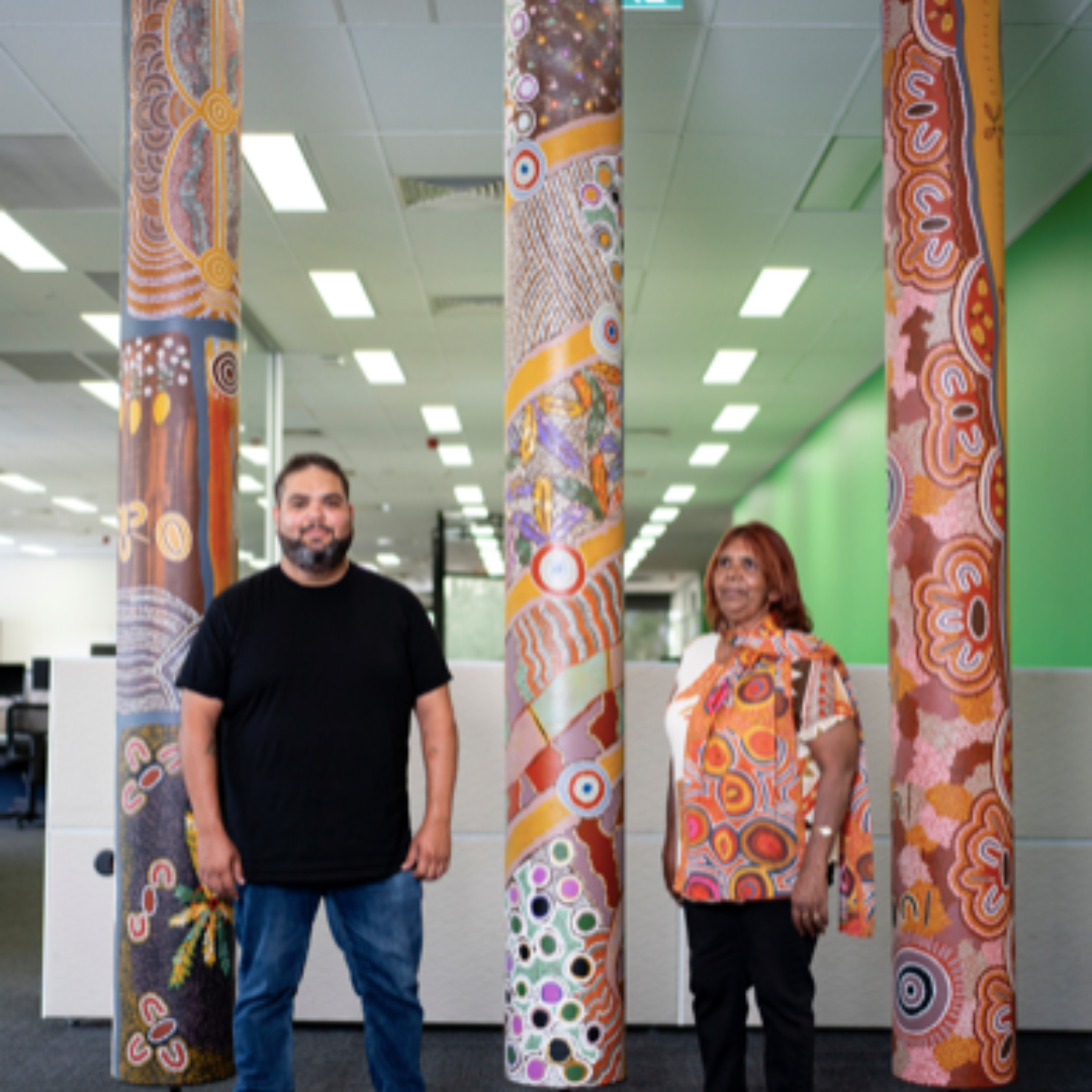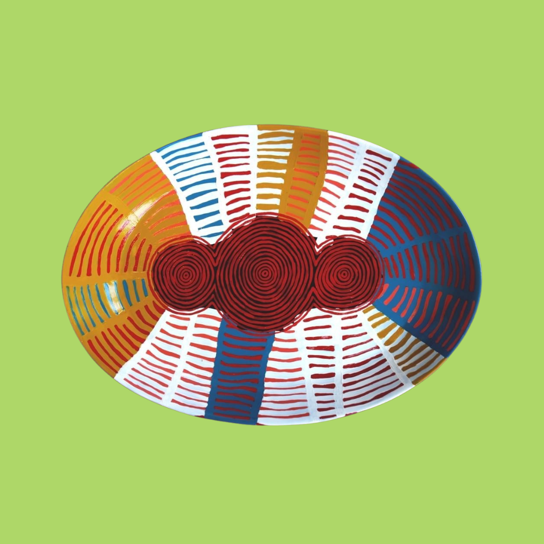 Meet Emrhan Tjapanangka Sultan, an artist from the Western Arrarnta, Luritja, Kokatha, and Yankunytjatjara peoples born and raised in Mparntwe Alice Springs. He started painting traditional Desert art from a young age, guided by his family of artists. Tjapanangka is unique because he mixes old and new art styles, using digital designs and new colours, as well as hand painting on canvas.